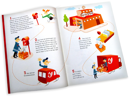 This childrens book, made for the Belgian Post, was sent as a present from ‘Saint-Nicolas’ (aka the original ‘Santa Claus’) to all children who sent a letter to ‘the holy Saint’. It tells of the travel a letter makes from the sender to the recepient, and contains additionale games, postcards etc.
