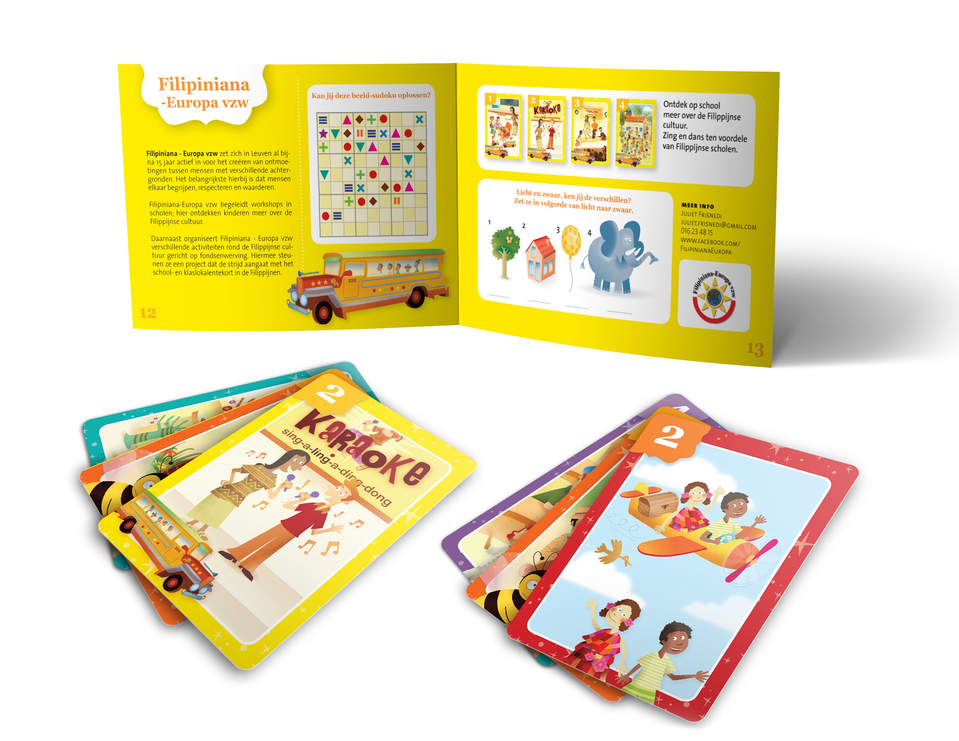 ‘Ontdek de wereld in Leuven’ is een kwartetspel dat Djapo maakte in samenwerking met de stad. 36 geïllustreerde kaarten op groot formaat en een leuk spel-boekje. Wie het spel speelt ontdekt heel wat Leuvense initiatieven van mondiale solidariteit en diversiteit. Het kwartet is gisteren ‘ingespeeld’ door de kinderen van De Kettekeet, samen met schepen Mohamed Ridouani en met Miette van Djapo.