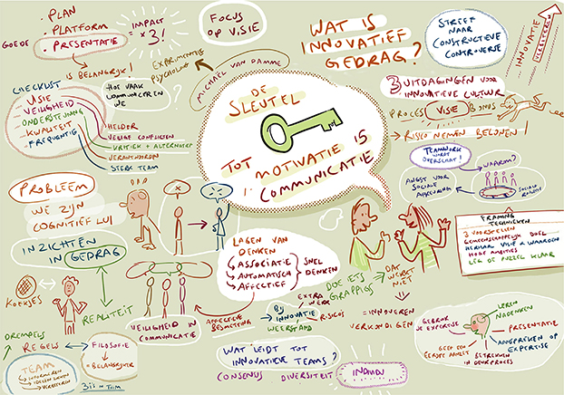 Tijdens congressen, trainingen en andere evenementen wordt zo de kern van een ter plekke op papier, met humor waar nodig en gepast.
